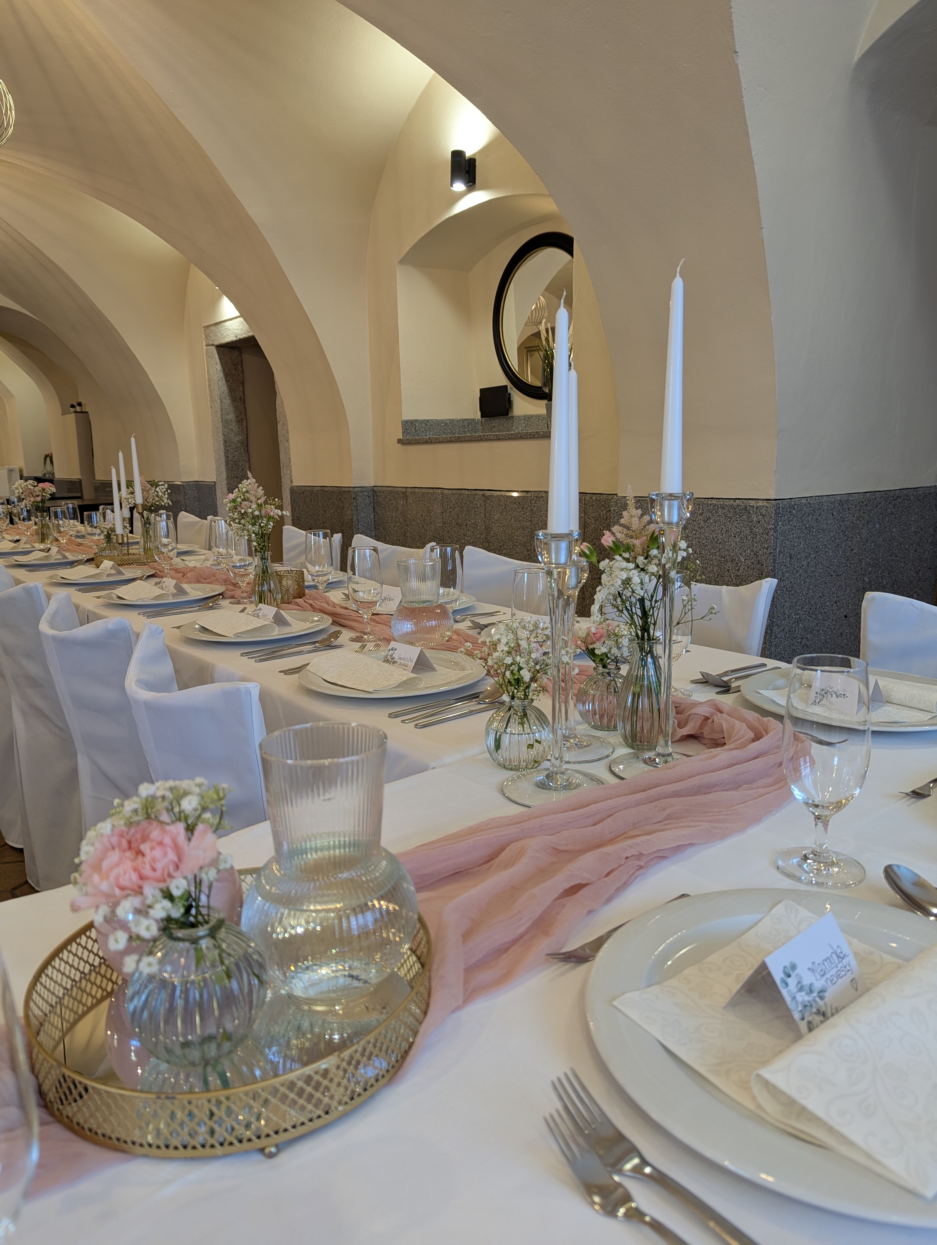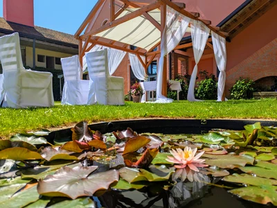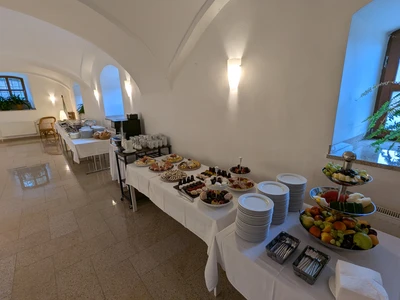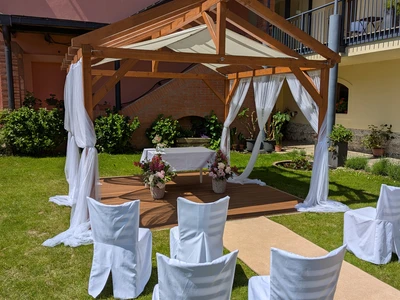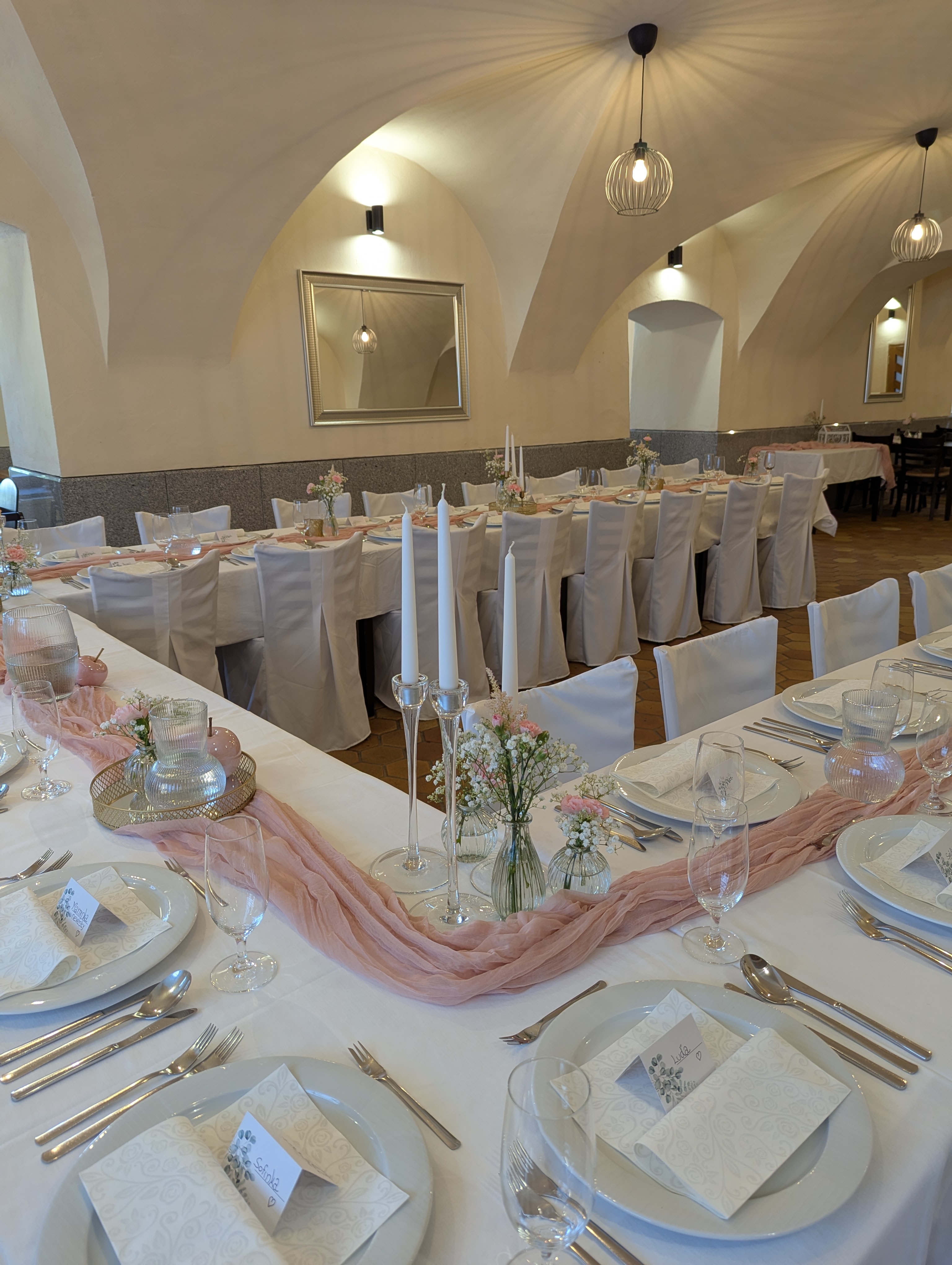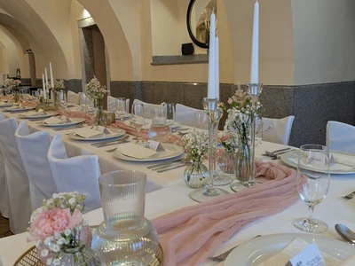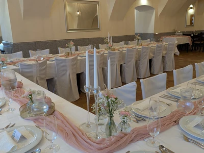 We will arrange the wedding table and provide decorations. We collaborate with the excellent wedding studio Merry's Day and the exquisite pastry and café Petr Haas in Telč.